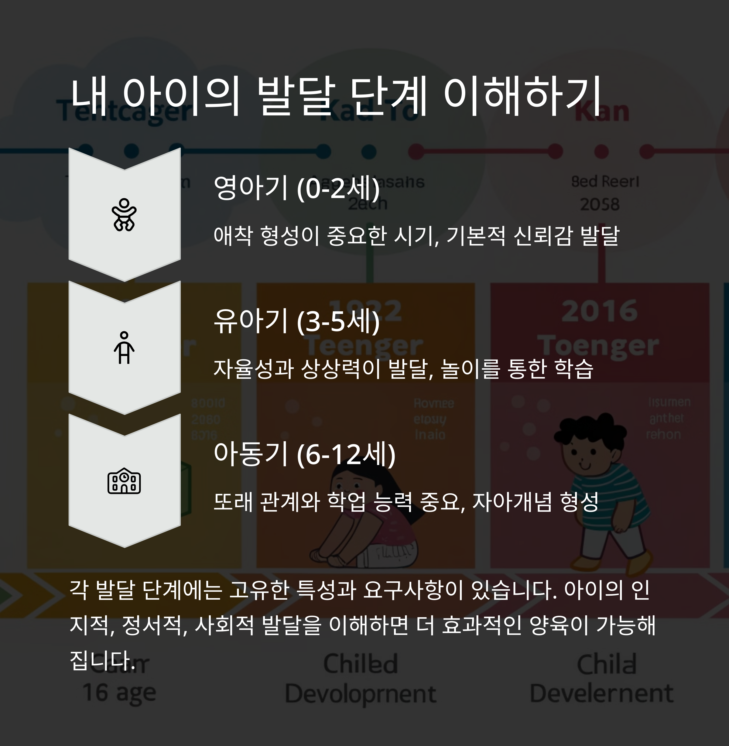| 발달 단계 | 아동의 심리는 나이에 맞는 발달 단계에서 다양한 변화를 겪습니다. |