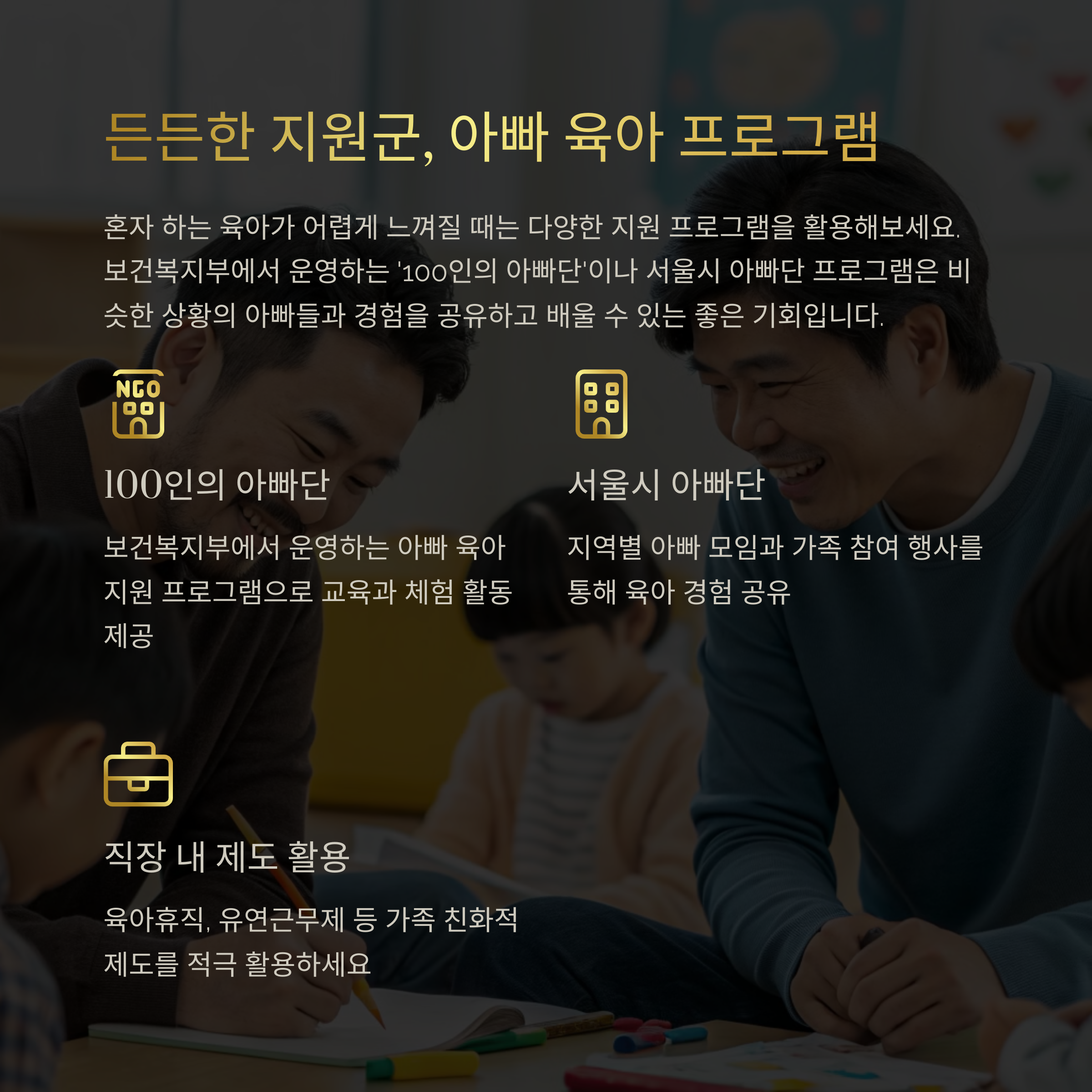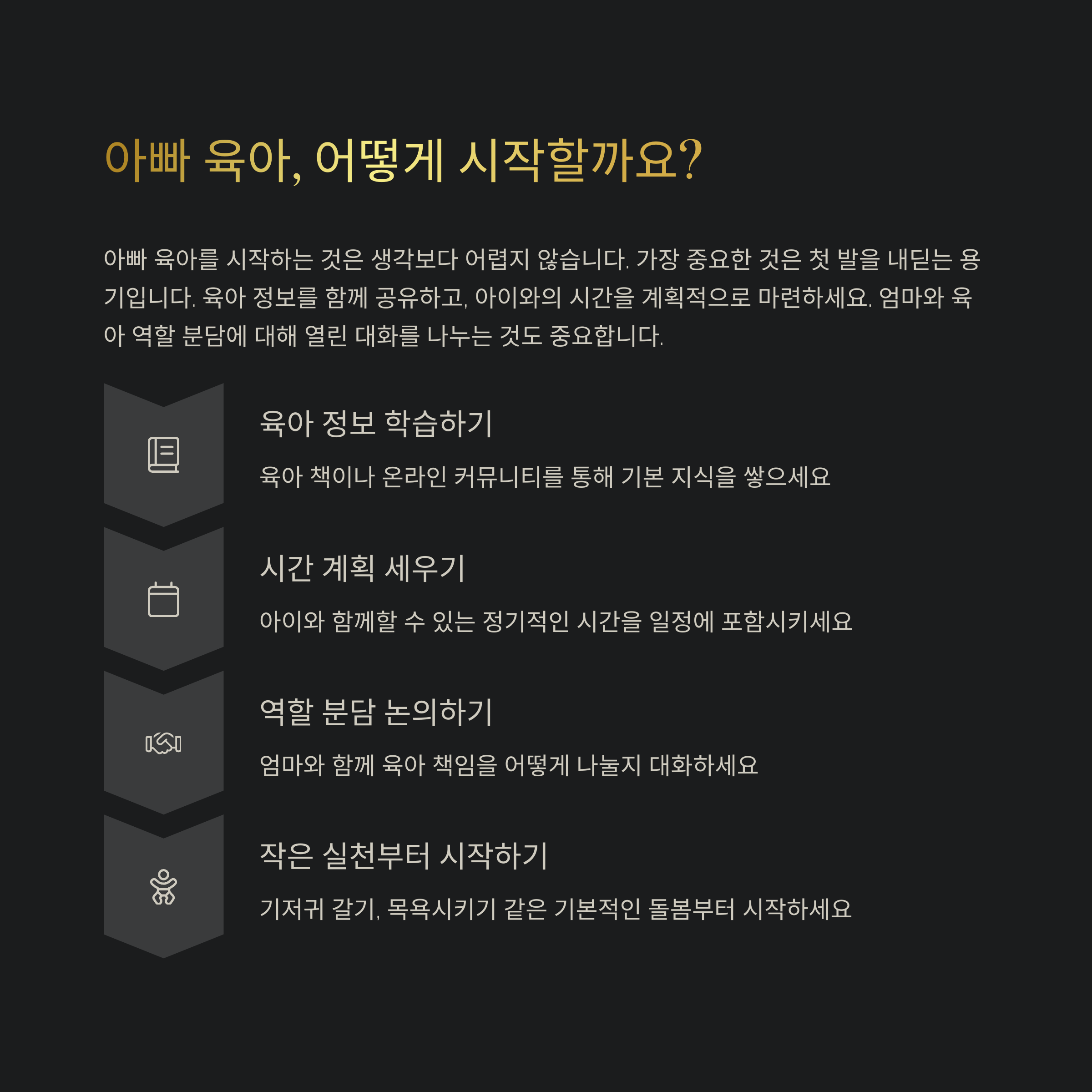 | 아빠가 육아에 적극적으로 참여하는 방법 | 가정에서 부모 역할을 자연스럽게 실천하기 | 육아에 참여하며 아이와의 유대감 강화 |