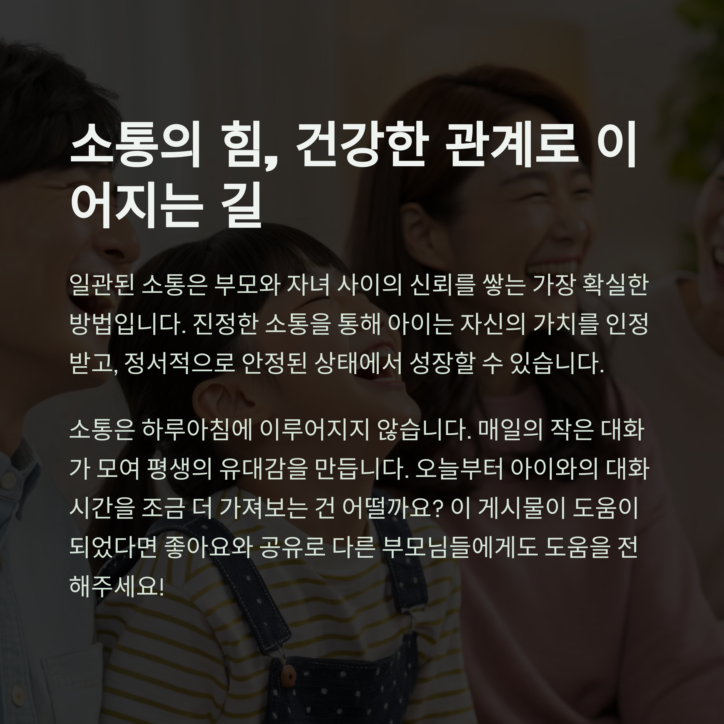 | 소통의 중요성 | 아이와의 소통은 신뢰를 쌓는 중요한 과정입니다. |