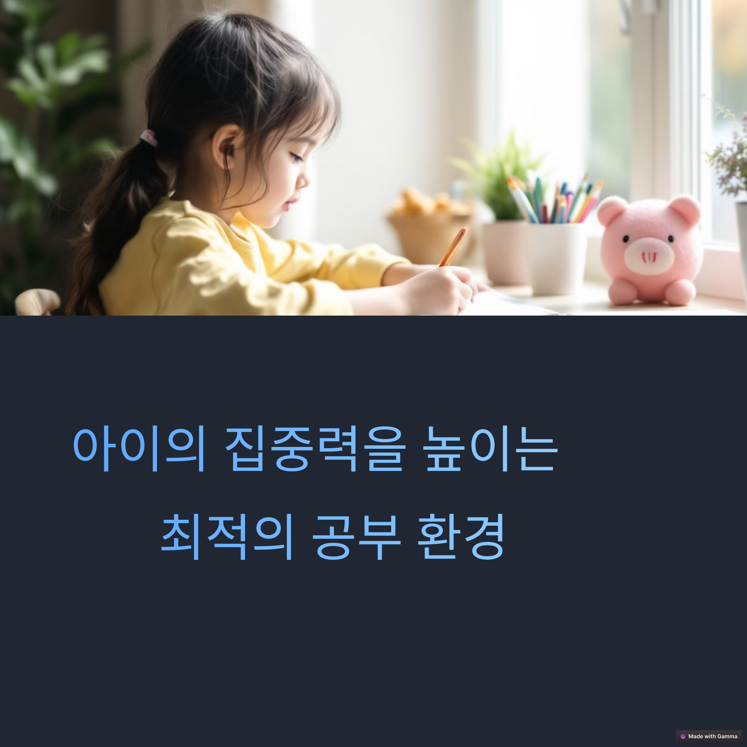 아이의 집중력을 높이기 위한 공부 환경을 구축하는 것은 단기적인 효과뿐만 아니라 장기적인 학습 성과에도 큰 영향을 미칩니다. 환경의 중요성을 잘 인식하고, 아이에게 맞는 공부 공간을 조성해 주세요.