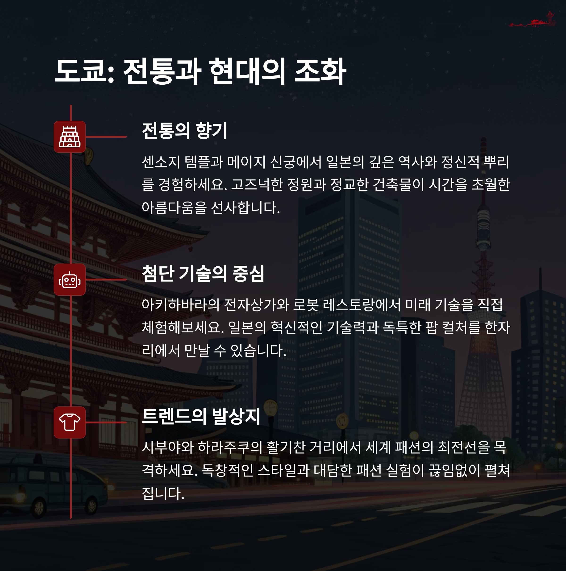 두 번째 추천지는 도쿄입니다. 도쿄는 전통과 현대가 공존하는 도시로, 여행작가에게 다양한 스토리와 영감을 제공합니다. 츠키지 시장과 아사쿠사에서 느낄 수 있는 일본의 전통적인 매력과, 신주쿠와 하라주쿠에서 경험할 수 있는 현대적인 패션과 기술의 혁신이 돋보입니다. 도쿄의 거리 하나하나가 여행작가의 눈에 새로운 이야기거리가 될 것입니다.