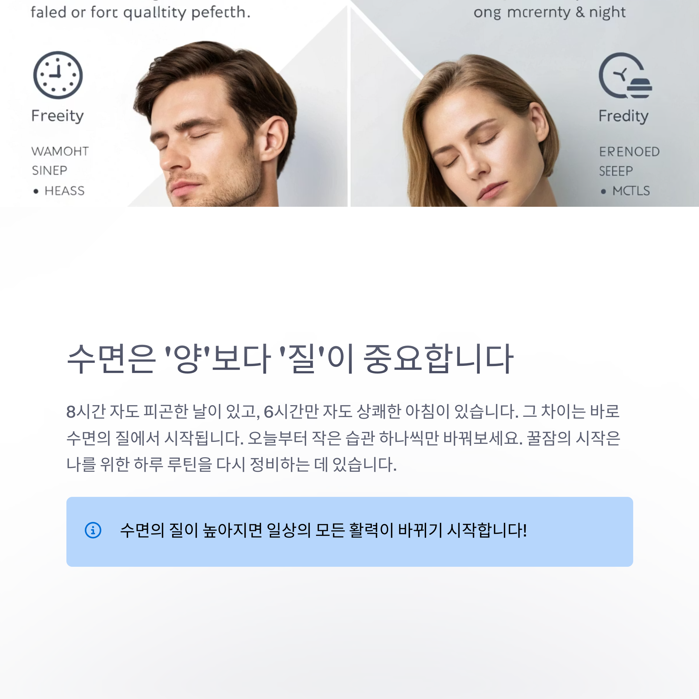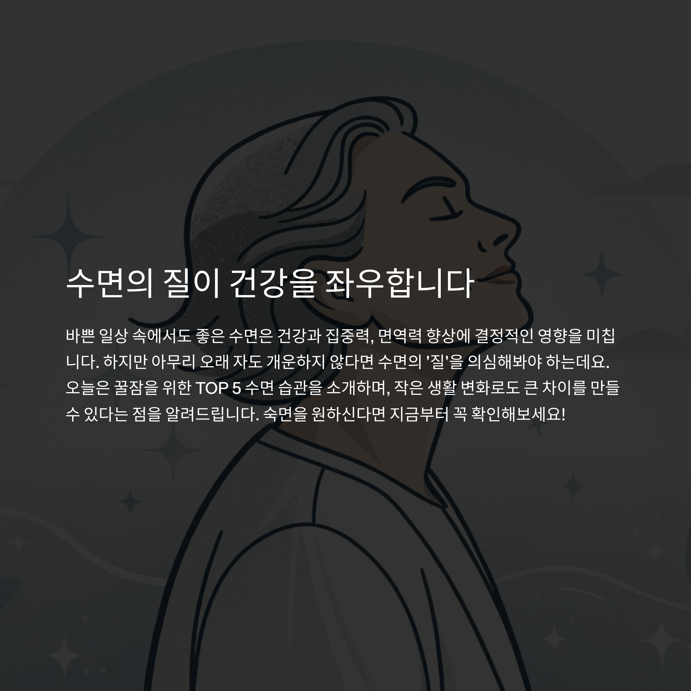 수면의 질이 높아야 진정한 휴식이 가능하고, 몸과 마음이 모두 회복됩니다.