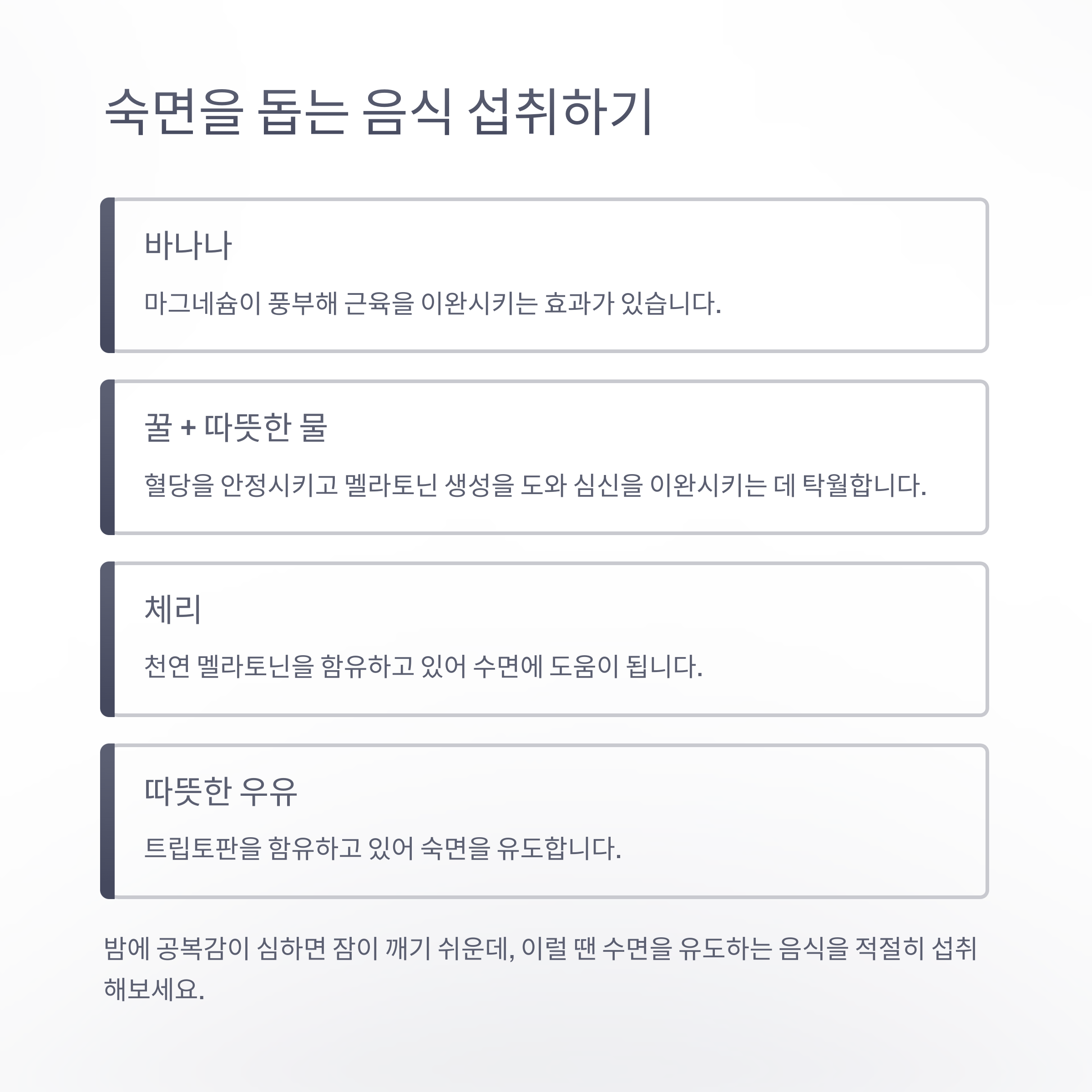 음식 주요 성분 수면 도움 방식
