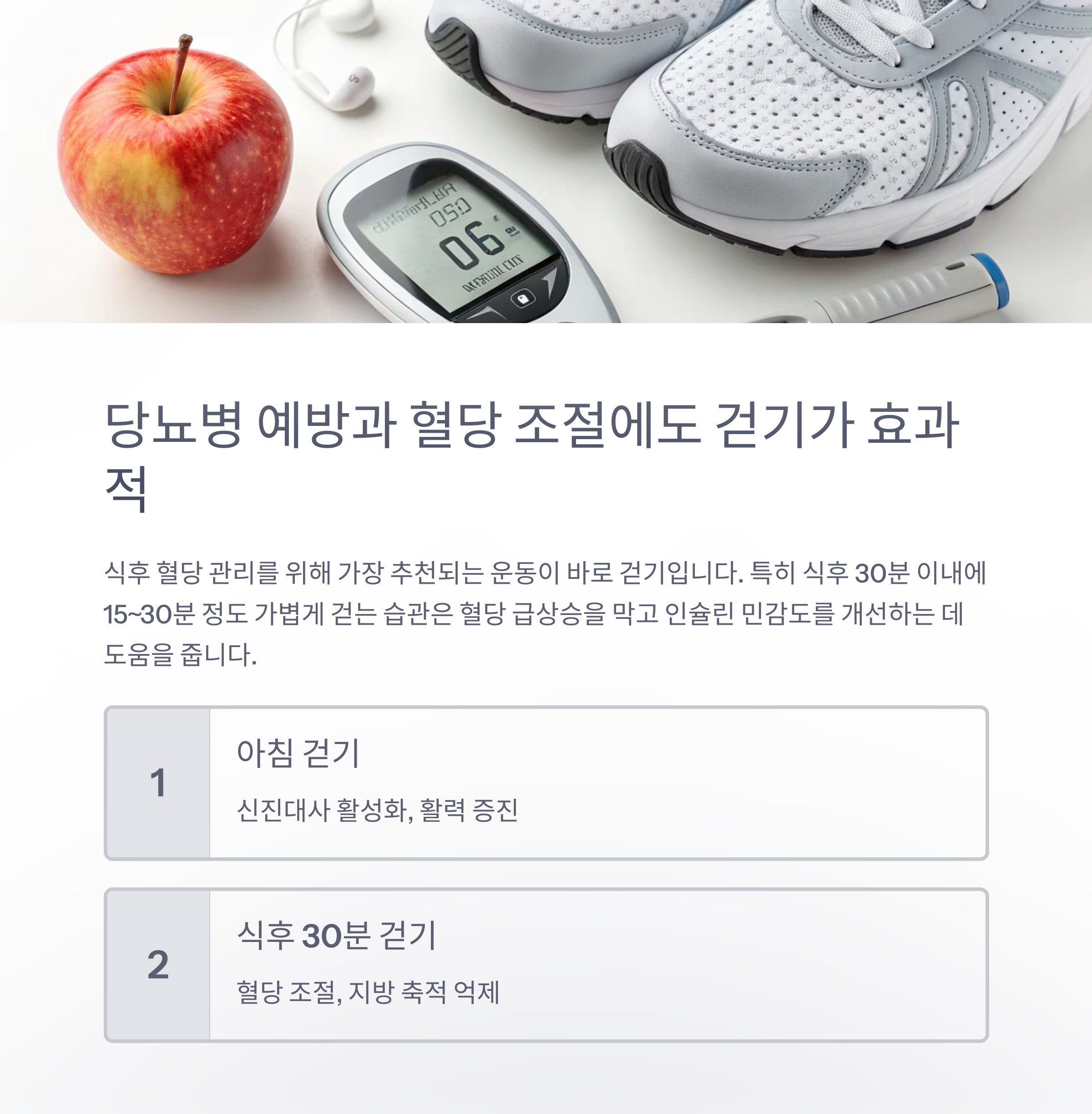 식후 혈당 관리를 위해 가장 추천되는 운동이 바로 걷기입니다.