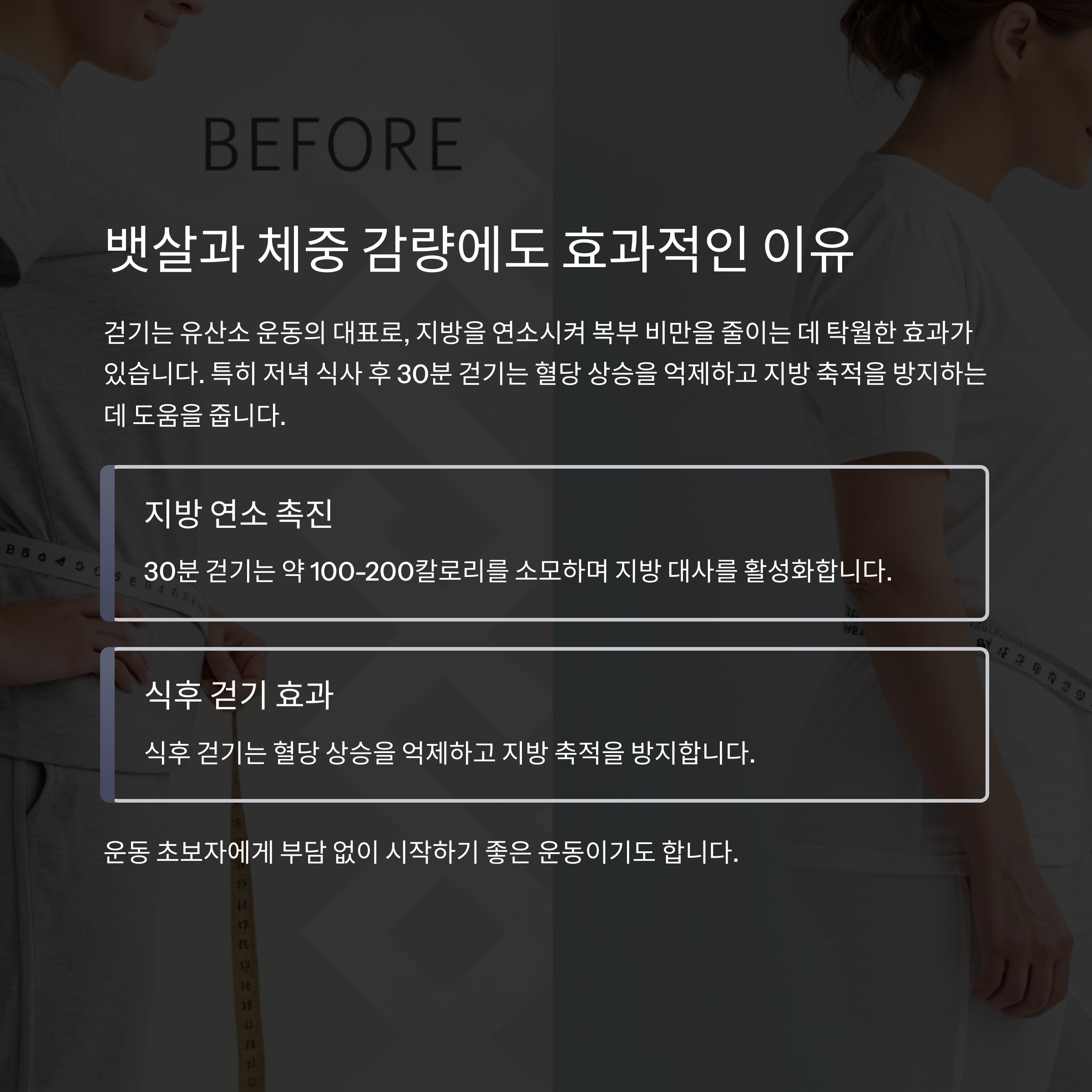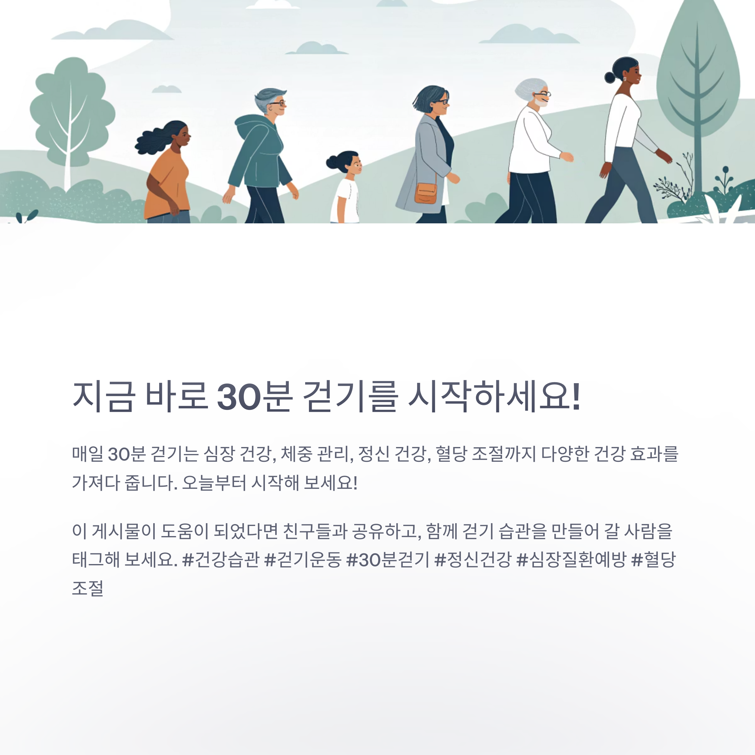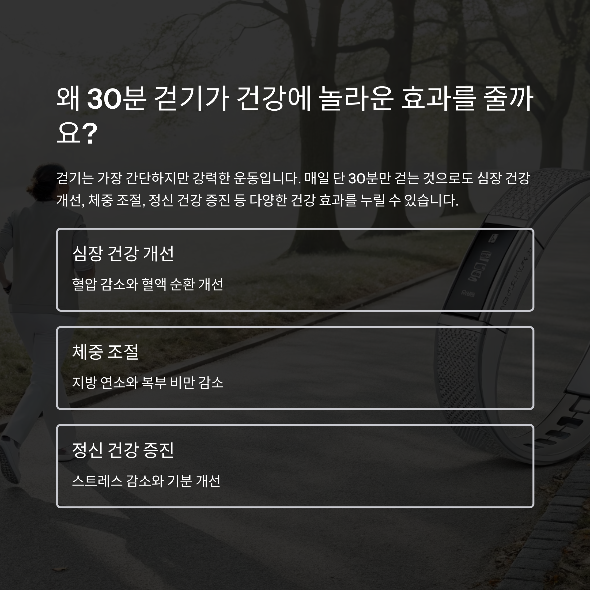 걷기는 가장 간단하지만 강력한 운동입니다. 매일 단 30분만 걷는 것으로도