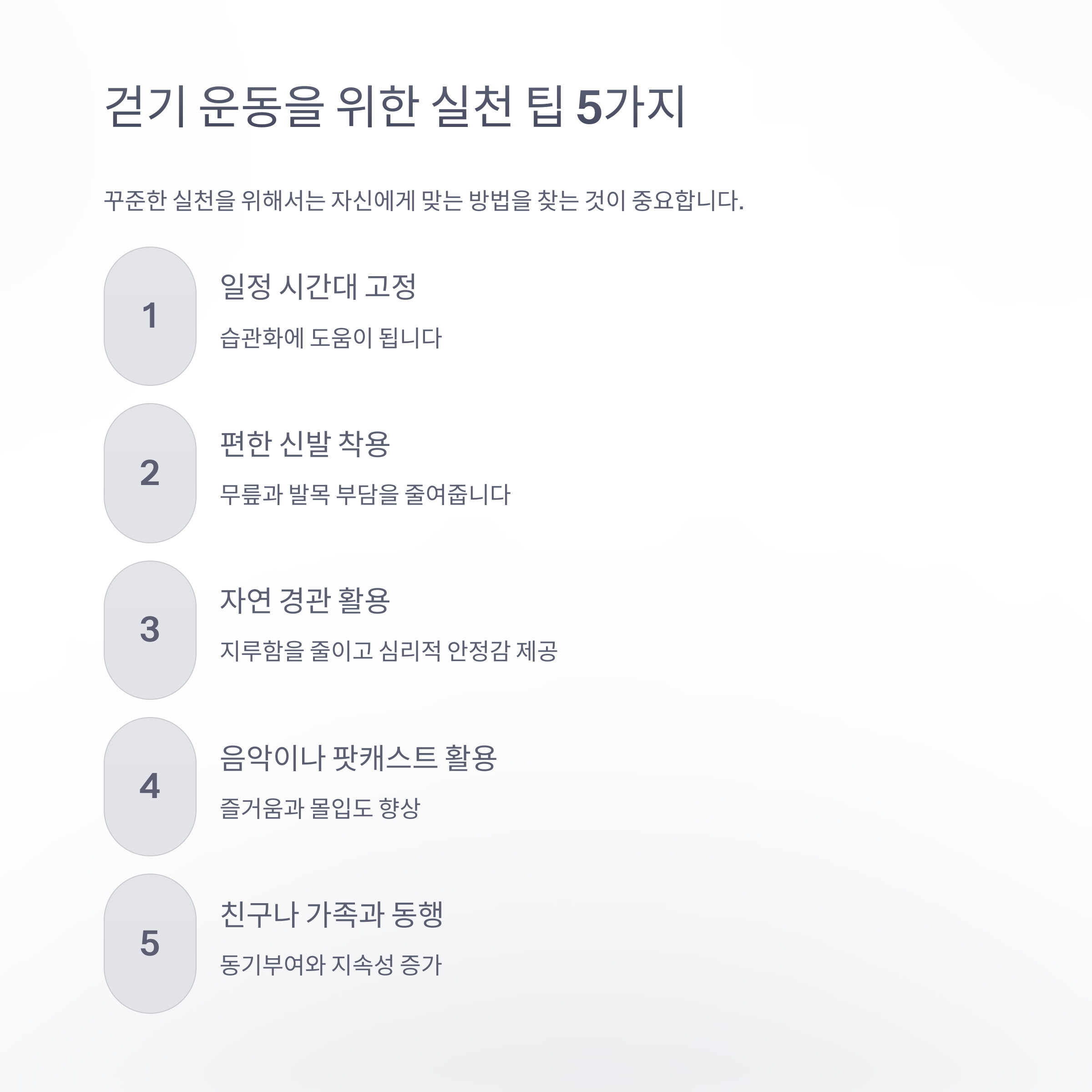 | 2 | 편한 신발 착용 | 무릎과 발목 부담을 줄여줍니다 |