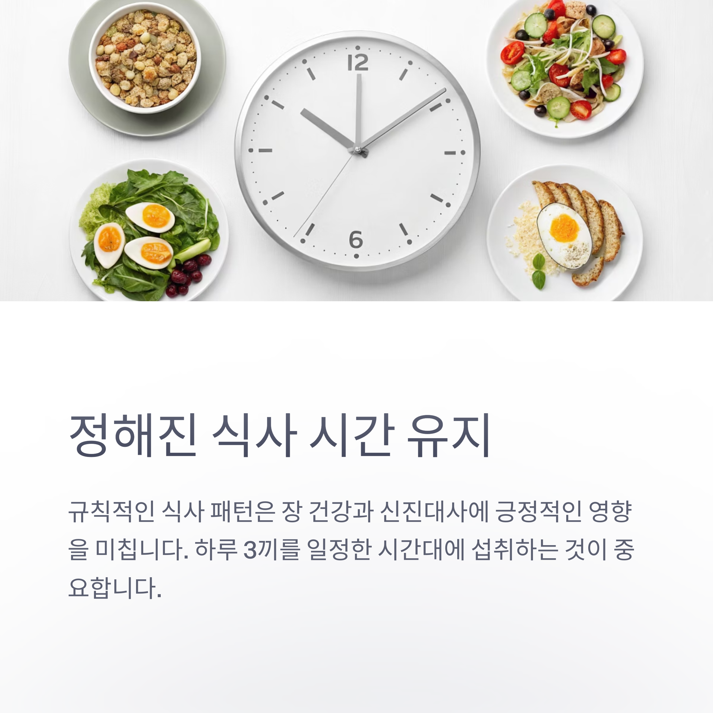 규칙적인 식사 패턴은 장 건강과 신진대사에 긍정적인 영향을 미칩니다.