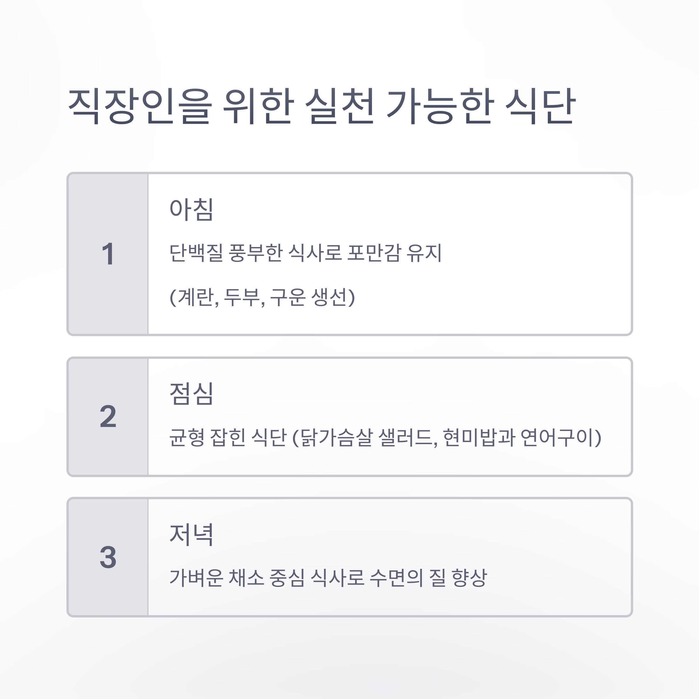 직장인을 위한 실천 가능한 식단